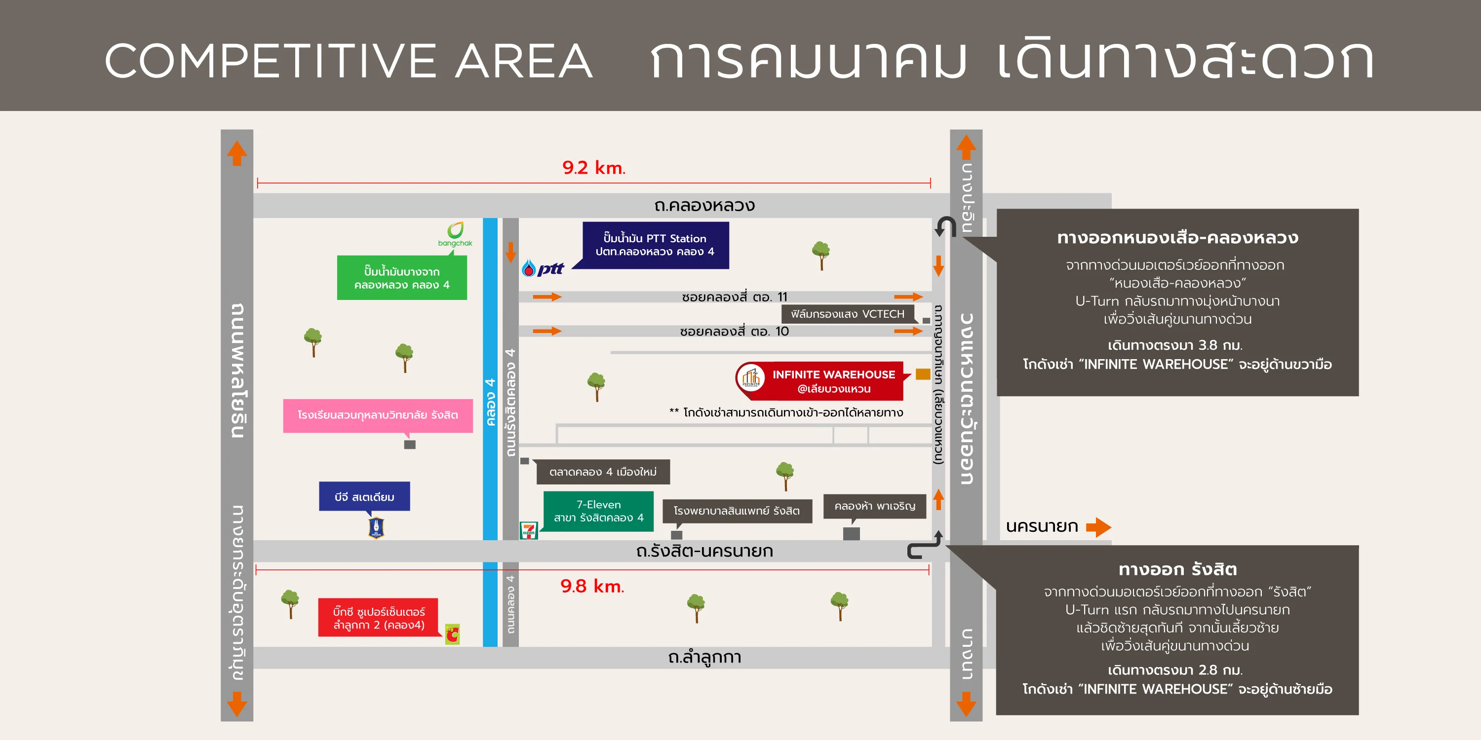 สามารถขนส่งสินค้าเข้าเขตชั้นในได้ ในเวลาอันรวดเร็ว ถนนหน้าโกดังกว้างขวางและทางเข้าโกดัง สามารถเข้าออกได้สะดวก